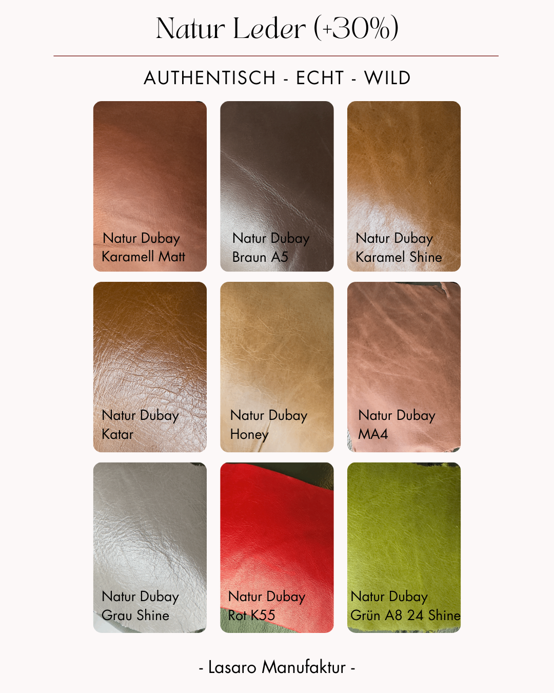 • Echtes Premium-Leder: Wählen Sie zwischen robustem, pflegeleichtem Madras Möbelleder oder naturbelassenem Leder mit authentischer Struktur (+30 % Aufpreis).